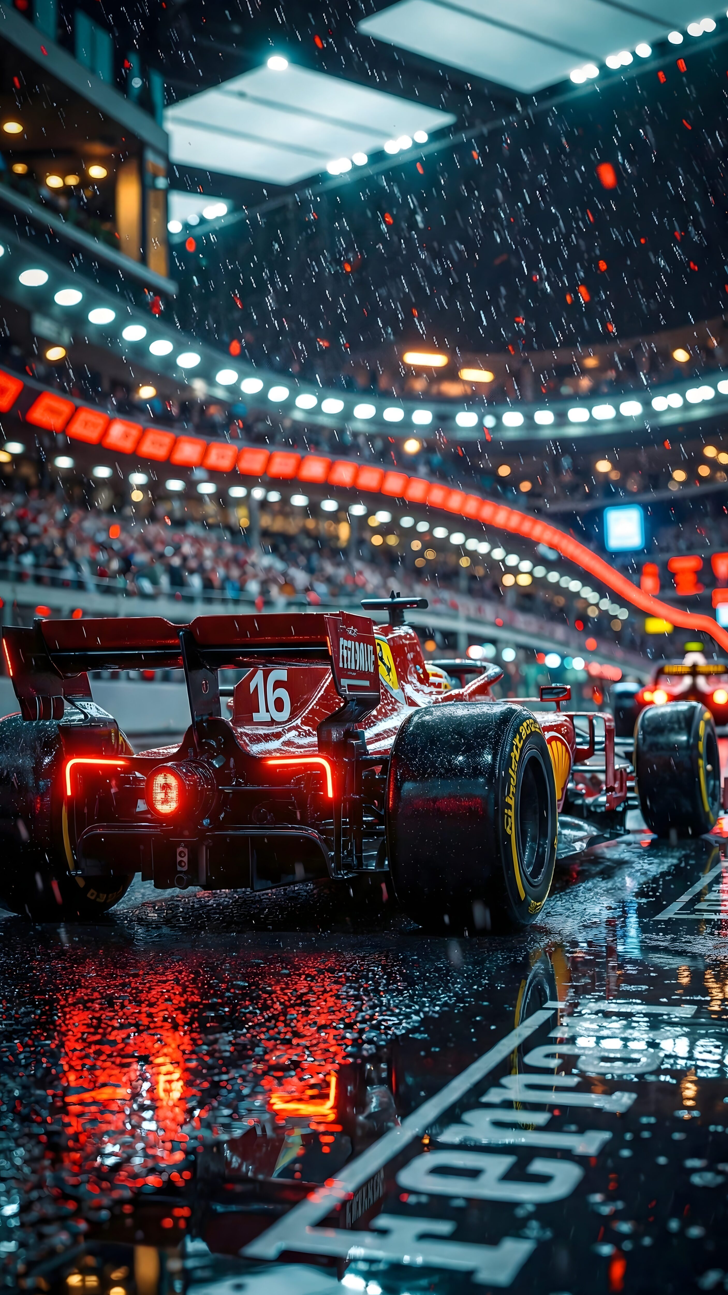 F1 Red Racing Car Night Rain: 4K Cinematic Sports Phone Wallpaper