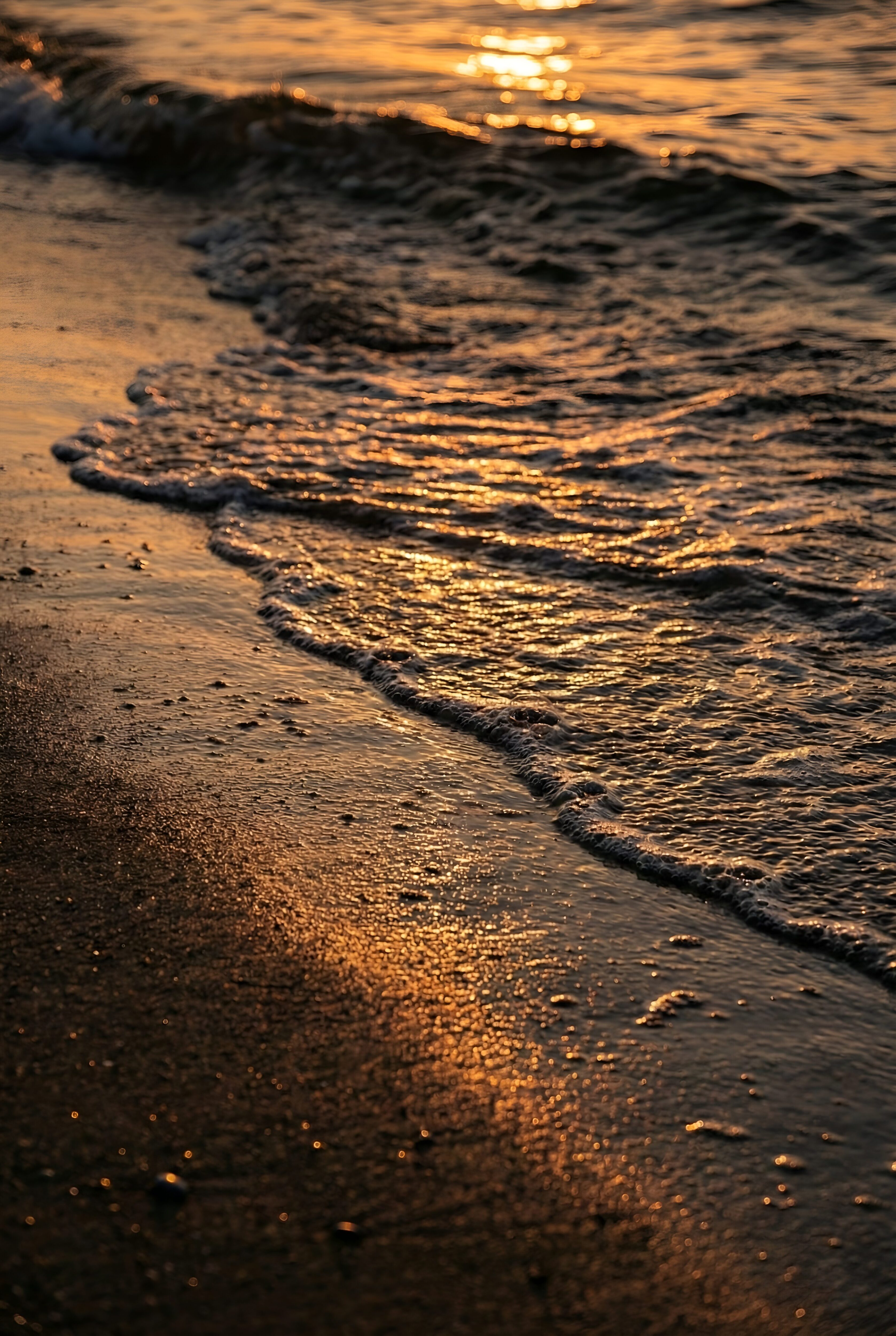 A hyper-realistic capture of the ocean’s golden moment. Enhanced with AI upscaling to reveal every grain of sand and ripple of water.