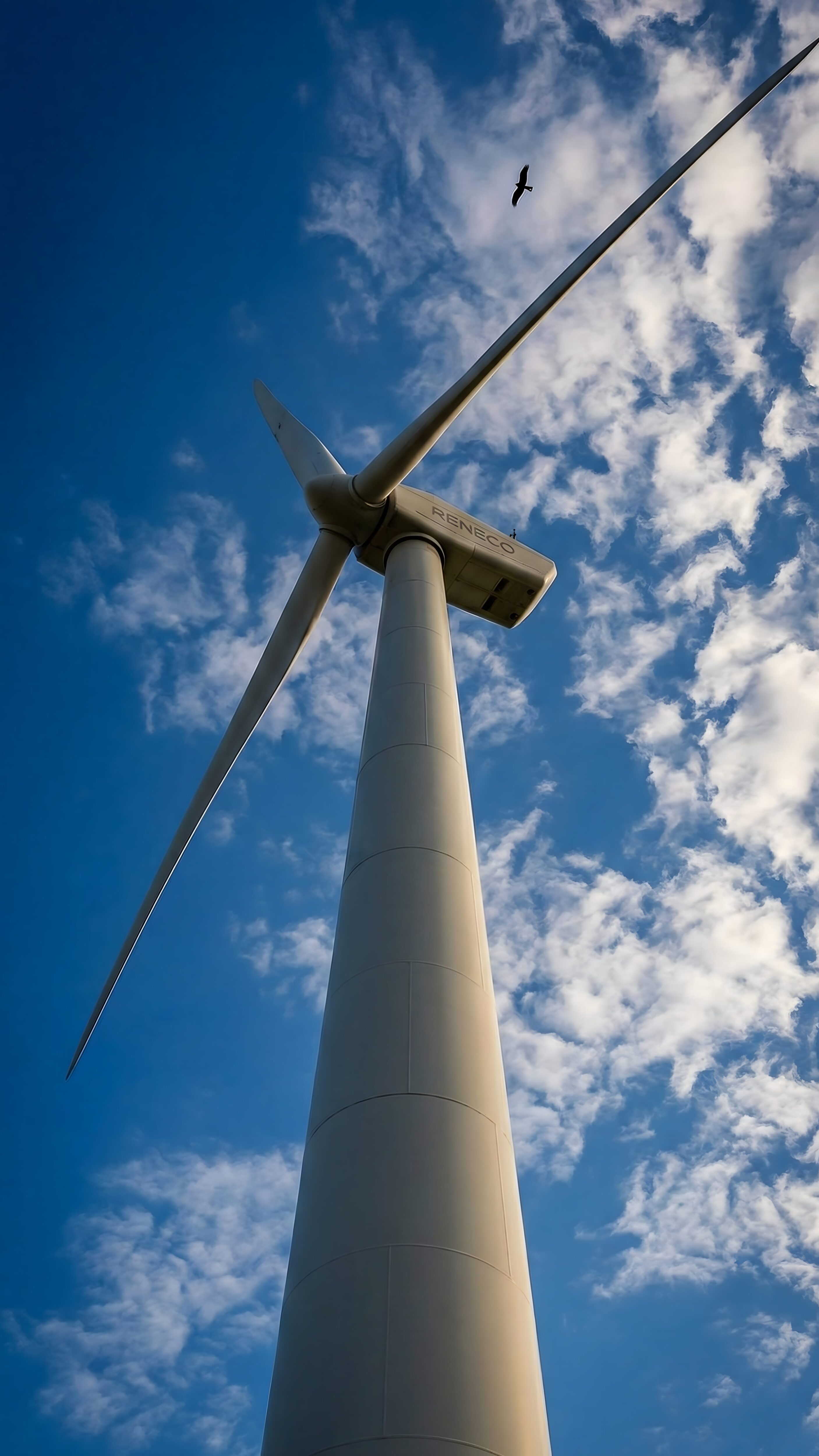 Wind Turbine Blue Sky 4K: Sharp Aesthetic Mobile Wallpaper